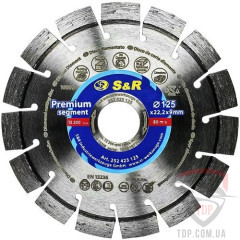Код товару: 102438Диск алмазний по бетону S&R PREMIUM SEGMENT 125x22.2x9мм (252423125)- Артикул: 252423125