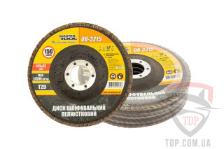Код товару: 213741Диск шліфувальний пелюстковий MasterTool Т29 125x22 мм P150 5шт (08-3215PC)- Артикул: 08-3215PC