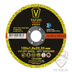 Код товару: 214346Круг відрізний по металу Vatzo Premium 41 14А 125x3x22.23мм- Артикул: Premium4114A125302223