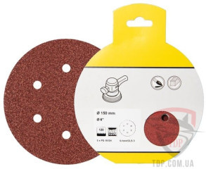 Код товару: 214504Круг шліфувальний на липучці Klingspor PS18EK 150мм P80 з отворами 5шт- Артикул: k315555
