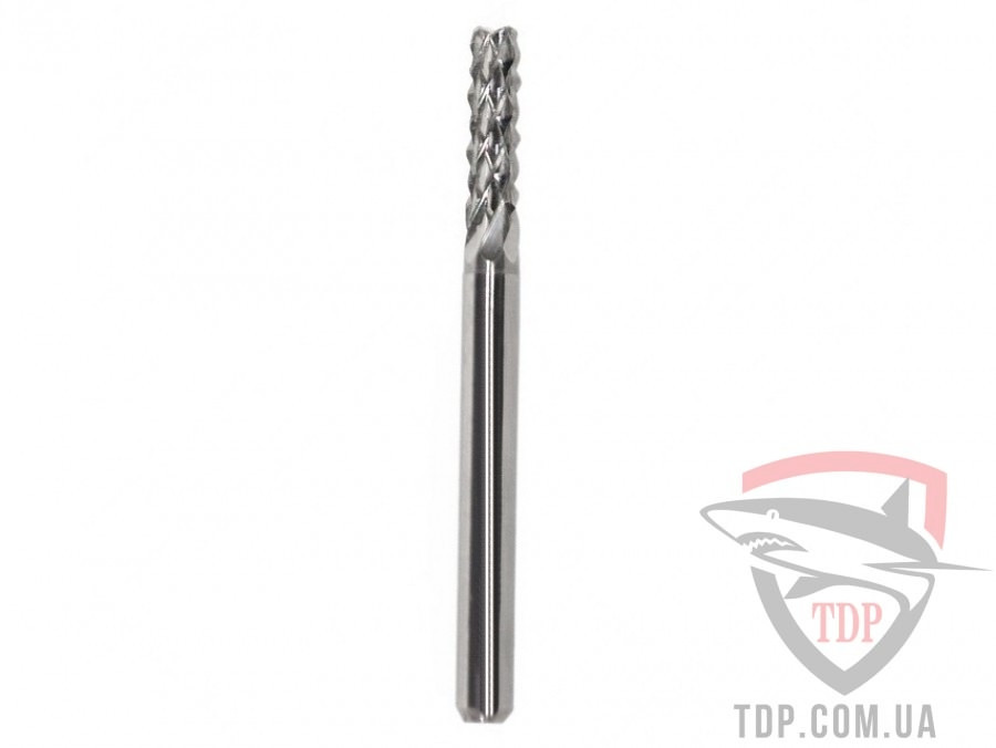 Фреза для ЧПУ кукурудза D3.175 d3.175 L40 h12 (C31754012) застосовується для обрізання матеріалу та прорізання пазів. За рахунок своєї геометрії, на фрезі утворюється величезна кількість ріжучих ножів. При обробці стружка перетворюється на пил і з легкістю виводиться з місця різання, а також виключає утворення сколів на кромці матеріалу.
