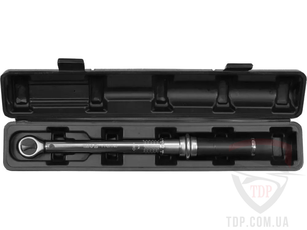 Ключ динамометричний YATO 1/2" L 260-385 мм (YT-07740) призначений для точного затягування різьбових з'єднань із контрольованим зусиллям, що забезпечує надійність і запобігає пошкодженню деталей. Ідеально підходить для використання в автосервісах, а також у гаражах та майстернях при виконанні відповідальних робіт. Оснащений оглядовим вікном для зручного встановлення моменту затягування, що підвищує точність і комфорт у роботі. Завдяки міцній конструкції та зручному форм-фактору ключ забезпечує довготривалу експлуатацію в інтенсивних умовах.