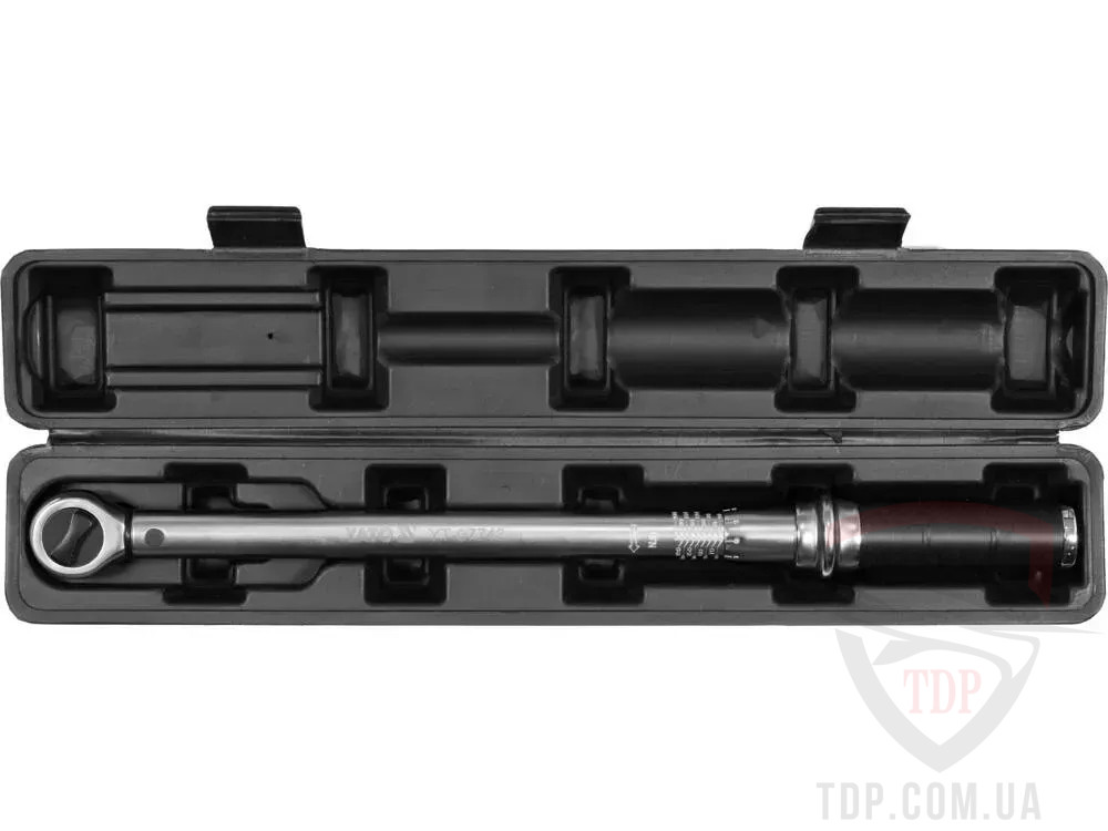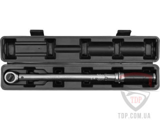 Ключ динамометричний YATO 1/2" L 445-465 мм (YT-07743) призначений для точного затягування різьбових з'єднань із контрольованим зусиллям, що забезпечує надійність і запобігає пошкодженню деталей. Ідеально підходить для використання в автосервісах, а також у гаражах та майстернях при виконанні відповідальних робіт. Оснащений оглядовим вікном для зручного встановлення моменту затягування, що підвищує точність і комфорт у роботі. Завдяки міцній конструкції та зручному форм-фактору ключ забезпечує довготривалу експлуатацію в інтенсивних умовах.
