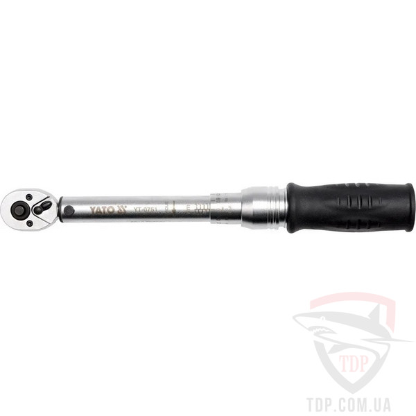 Ключ динамометричний YATO 1/4" L 281 мм (YT-0751) призначений для точного затягування різьбових з'єднань із заданим крутним моментом. Виготовлений із хромованадієвої сталі, що забезпечує високу міцність і довговічність під час тривалого використання. Ключ оснащений механічною тріскачкою, яка при досягненні встановленого моменту видає характерне клацання, сигналізуючи про завершення затягування. Шкала моменту розташована в ручці, налаштування проводиться за допомогою обертання, а після встановлення потрібного значення фіксується запобіжним замком на торці. Інструмент має сертифікат GS, що підтверджує його якість і відповідність технічним вимогам.