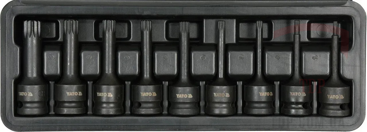 Набір біт ударних YATO SPLINE 9 шт (YT-10691) призначений для роботи з кріпленням типу SPLINE у поєднанні з ударними інструментами. Біти виготовлені з високоякісної сталі S2, що забезпечує підвищену твердість, зносостійкість та стійкість до високих навантажень. Довжина біт від 43 до 78 мм дозволяє зручно працювати у важкодоступних місцях. Набір складається з 6 біт найбільш поширених розмірів, що робить його універсальним вибором для автосервісу, ремонту техніки та професійного використання. Поставляється у міцному органайзері для надійного зберігання та транспортування.