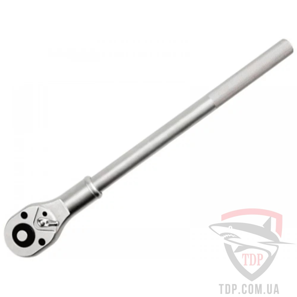 Тріскачка YATO 3/4" 500 мм 24T (YT-1360) призначена для роботи з великими головками та масивними різьбовими з’єднаннями, що вимагають значного зусилля. Храповий механізм із 24 зубцями забезпечує надійне передавання крутного моменту та витримує високі навантаження під час інтенсивної експлуатації. Подовжена рукоятка довжиною 500 мм дозволяє прикладати більше сили без додаткових інструментів, а ергономічна форма забезпечує зручність у користуванні. Виконана з міцної легованої сталі, тріскачка характеризується стійкістю до деформацій і тривалим терміном служби. Такий інструмент застосовується в промислових умовах, автосервісах і майстернях, де потрібна максимальна надійність.